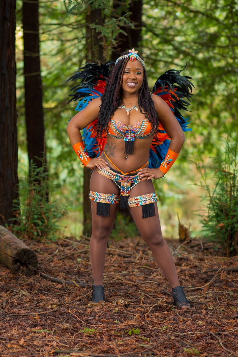 Includes: Bra, Belt, Hand Pieces, Leg Pieces, Headpiece, Feathered Backpack